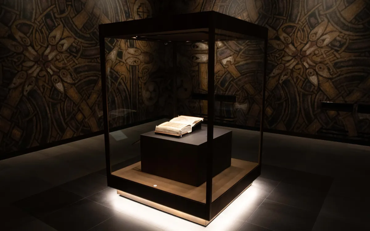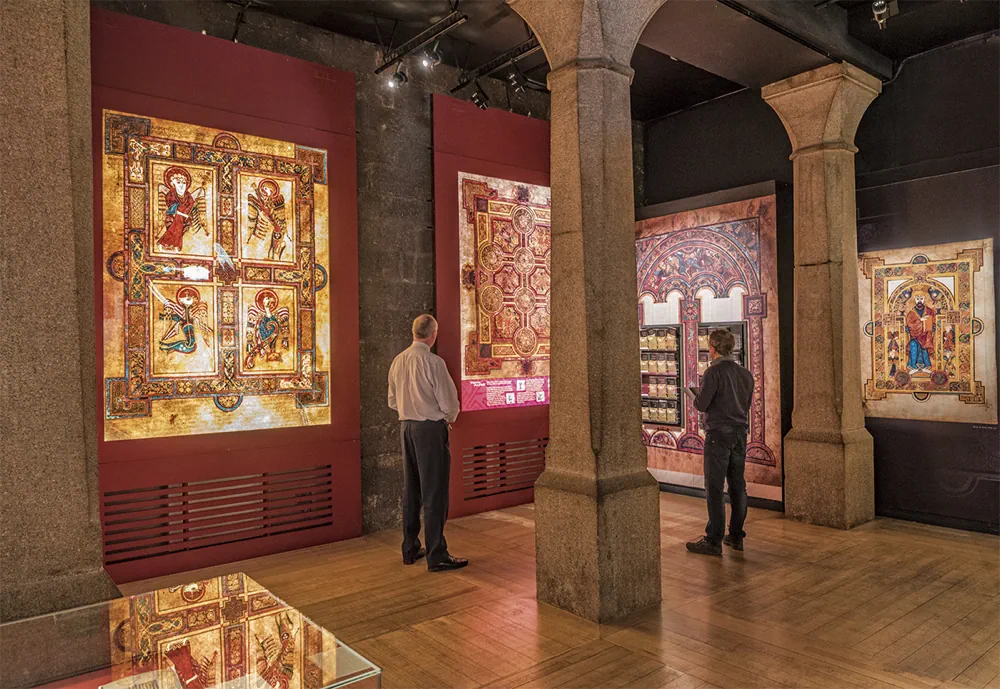 The Book of Kells is a 9th century manuscript that was produced over a 200-year period. It is permanently on display in the Long Room library.